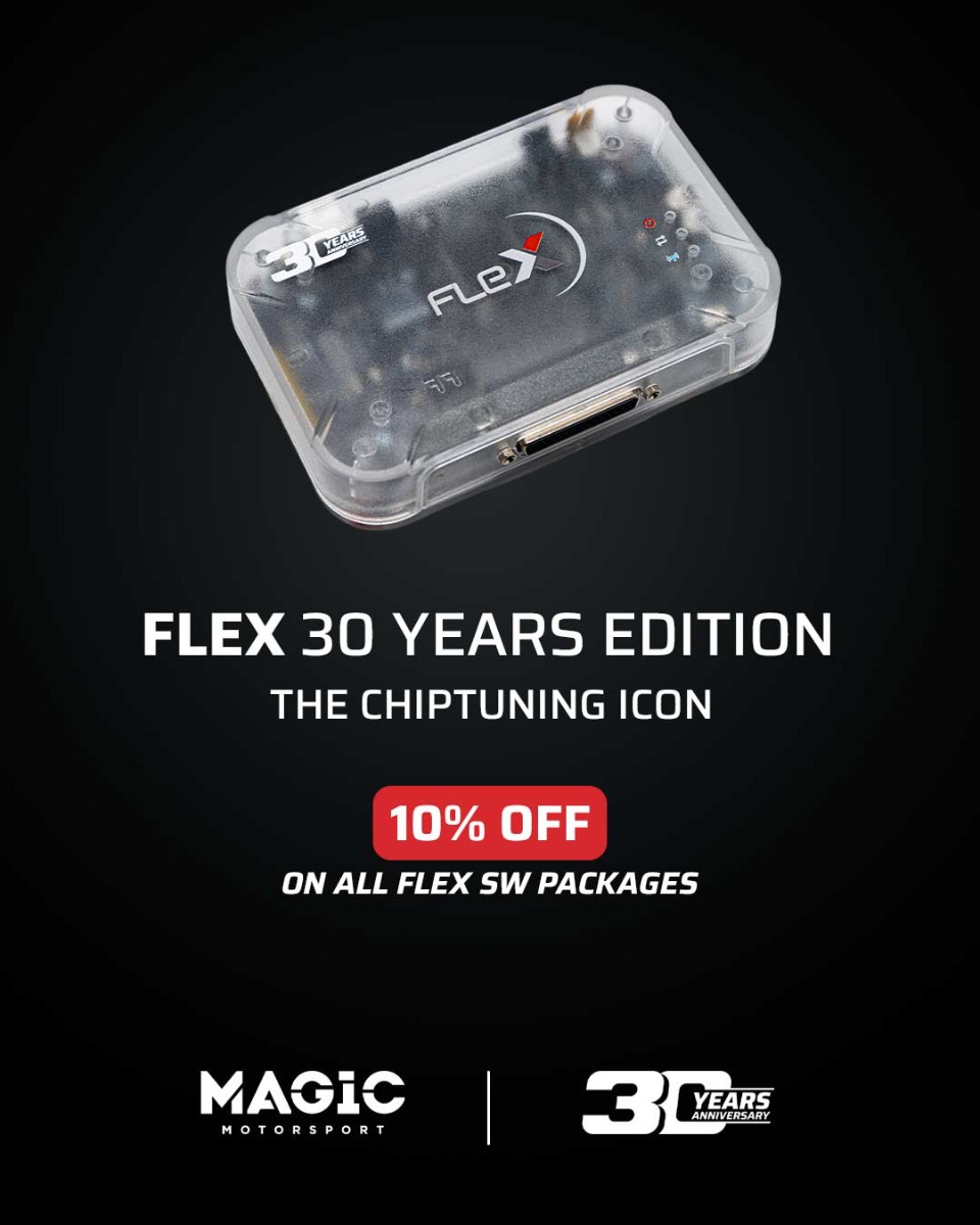 Flex is a professional tool designed to make programming operations faster and more efficient in mechatronic workshops. To celebrate Magicmotorsport’s 30th anniversary, we introduce an iconic version of our ECU and TCU programmer, created to mark this important milestone.