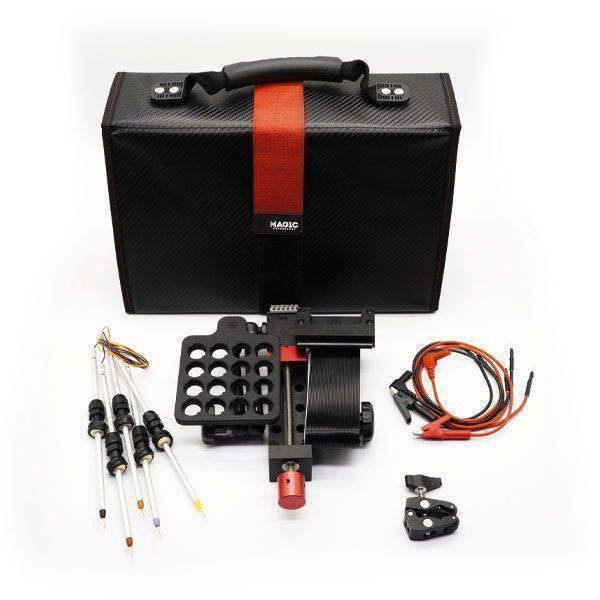 MAGBench Mini allows you to easily work on engine control units, automatic transmission units, and any other electronic unit. The click-system adjustable pin probes ensure precise connection without the need to apply any pressure, thus minimizing the risk of errors or damages to electronic components.